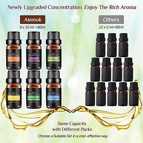 Etherische oliën set, Aiemok 6 x 10 ml etherische oliën cadeauset 100% pure therapeutische kwaliteit geurolie…
