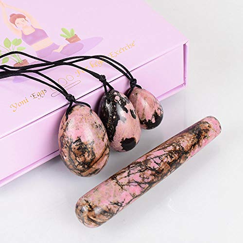 Specification: Jade EggsYoni Egg Wand Geschenkdoos Set Natuurlijke rhodoniet Kristal Boor Massage Jade Ei Kegel Oefening-30×20 mm