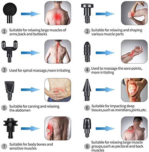 ➤【Ontwakende spiervitaliteit】 Naast het herstellen en ontspannen van spieren kan het ook stijve spieren ontspannen en het lichaam vormen. Geschikt voor rugpijn veroorzaakt door lange tijd op kantoor te zitten. Massagepistool kan de gebruiker helpen spierstijfheid en pijn te verlichten, de bloeddruk te verhogen, de algehele gezondheid van de zachte weefsels van het lichaam te verbeteren.