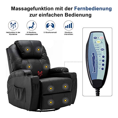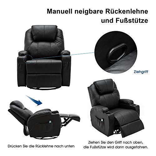 Specification: MCombo massagestoel met verwarming, televisiestoel, relaxfauteuil, draai- en schommelstoel, draait 360°