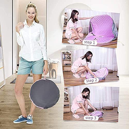 ▶DRAAGBARE u0026 AFSTANDSBEDIENING – Het kan worden opgevouwen, gemakkelijk te dragen en op te bergen, is een draagbare stoomsauna, kan indien nodig van saunaservice genieten. De afstandsbediening regelt de temperatuur in 9 niveaus, de tijd en temperatuur stel je eenvoudig zelf in!
