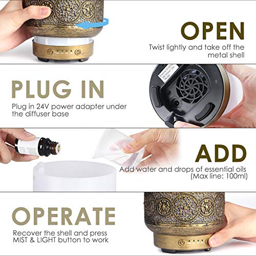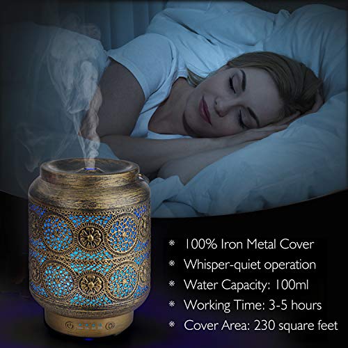 Specification: SALKING Aroma diffuser, 100ml metaal ultrasone aromatherapie diffuser voor etherische oliën, 7 kleuren nachtlampje…