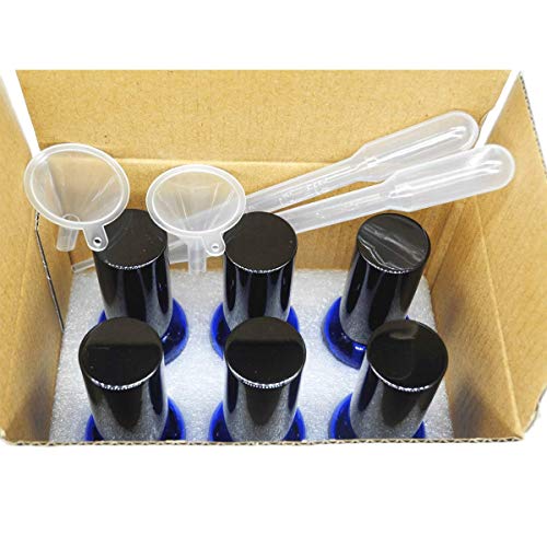 [Pakket Bevat] 6 samll blauwe glazen fles + 6 mini fijne nevelspray + 2 meer 3 ml plastic pipetten druppelaar + 2 plastic mini trechter
